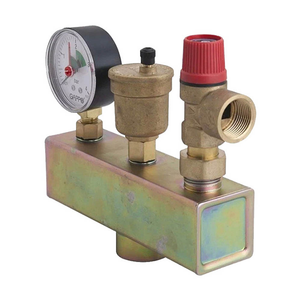 Группа безопасности - это обязательный набор устройств, обеспечивающих безопасность работы оборудования и систем отопления. Предназначена для удаления воздуха из трубопровода, а также для защиты котлов и закрытых систем отопления от избыточного давления.