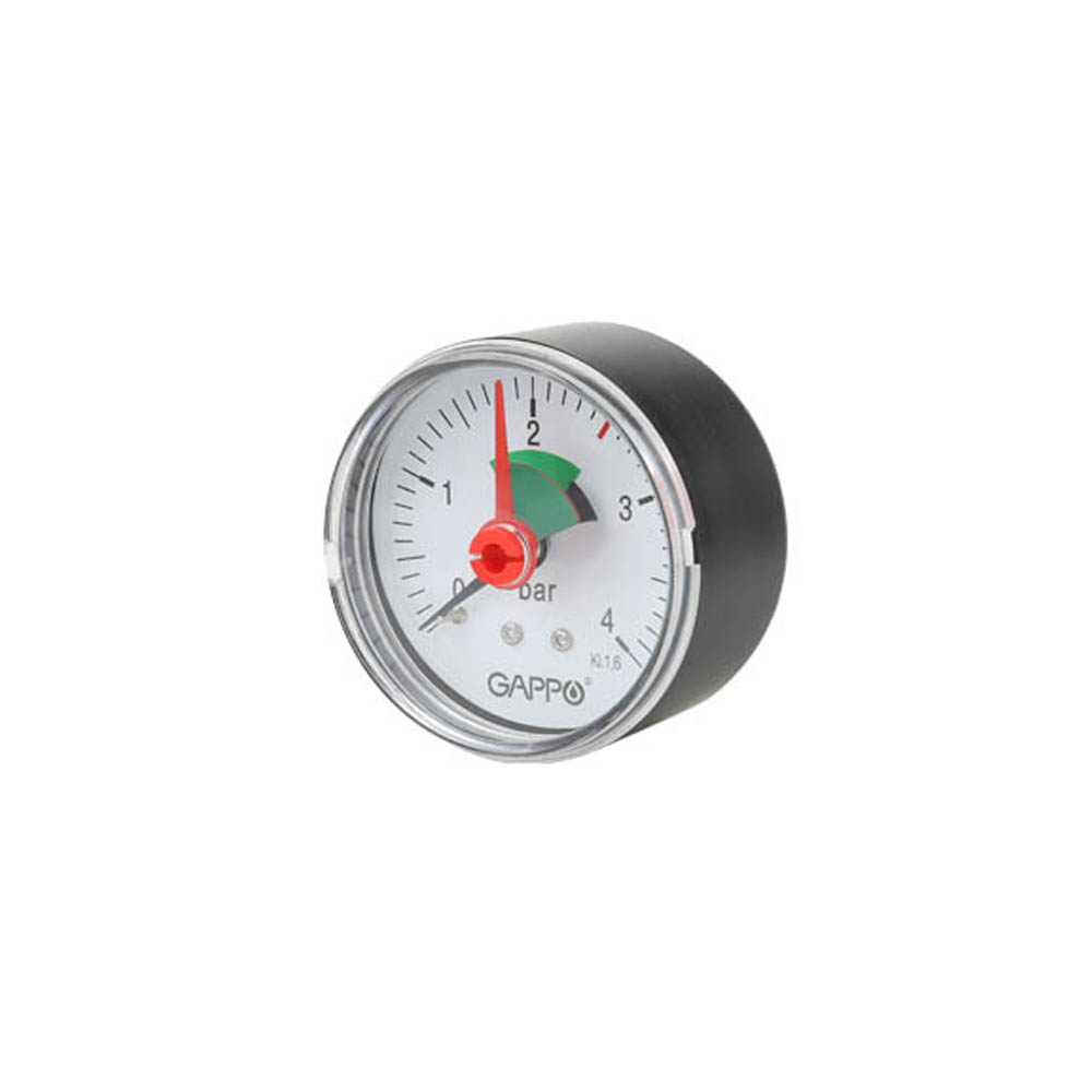 Манометр аксиальный (горизонтальный) с указателем предела Gappo G1471.4 1/4" х 4 бара – измерительный прибор для систем холодного или горячего водоснабжения.